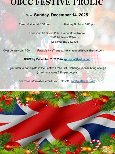 Payable by e-transfer to: okanaganbritishcar@gmail.com